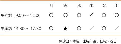 ・火曜午後「★」は手術、終了後に外来診療あり。